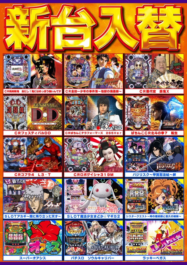 本日【新台入替】只今のお時間から新台がご遊技出来ます!!
