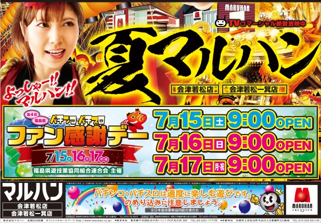 会津若松市福島県下マルハン明日全店10時オープン!