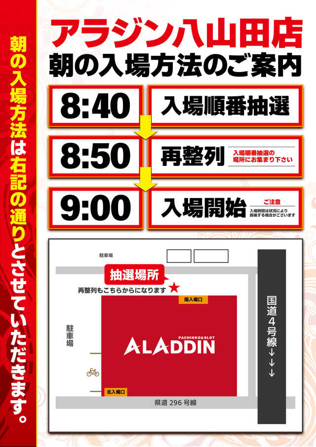 抽選希望4名以下の場合は並び順の入場となります。 |