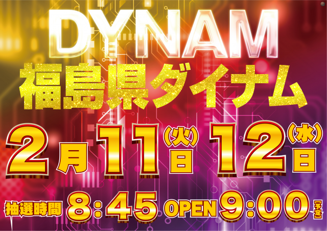 2月11日2月12日福島県ダイナム9時開店!抽選8:45!