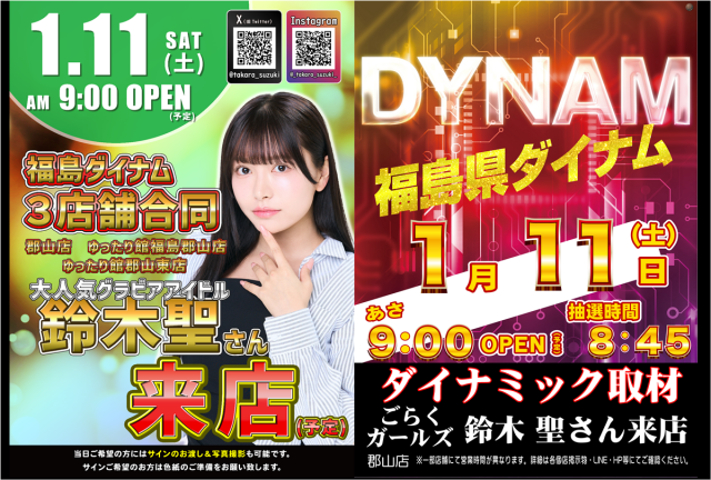 明日福島ダイナム9時開店!グラビアアイドル鈴木聖さん来店予定