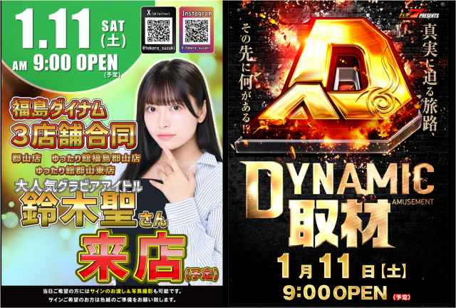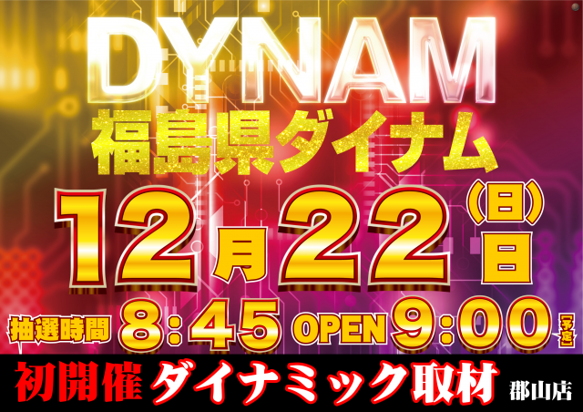 明日「DYNAMIC取材」初開催!福島県ダイナム9時開店!