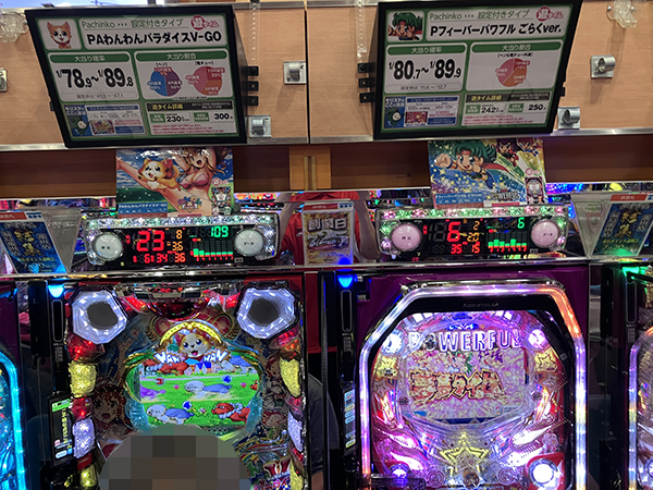 16時半ごろの0.5円パチンコでは「PA新海物語」や「Pフィーバーパワフル ごらく ver.」が盛況で、機種のポテンシャルをフルに活かすプレイヤーを複数確認している。
