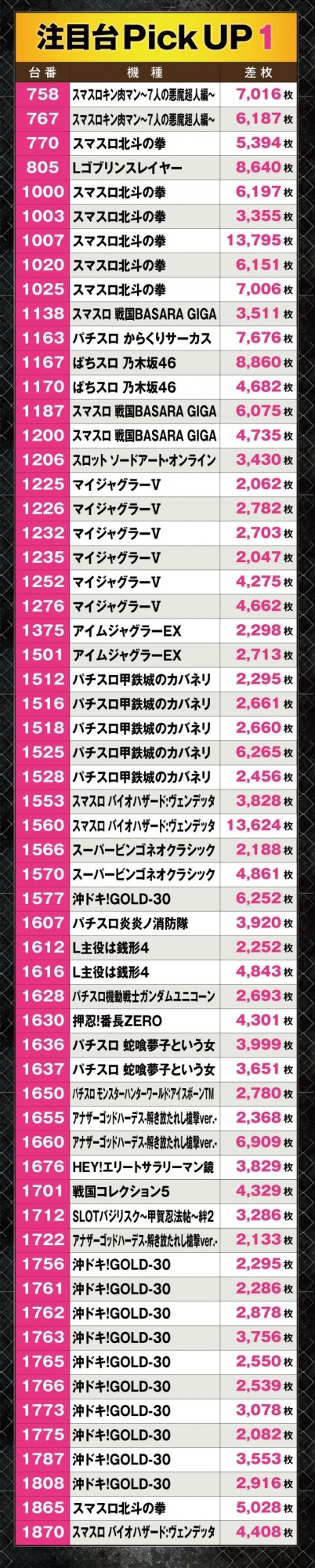 2日連続となる今回は、前日を上回る60台が対象台となっており、なんとその全台が2,000枚オーバーという最早伝説レベルの結果となっていた!!