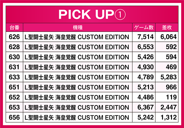 最新機種の「L聖闘士星矢 海皇覚醒 CUSTOM EDITION」では、626番台と633番台が5,000ptオーバー!!