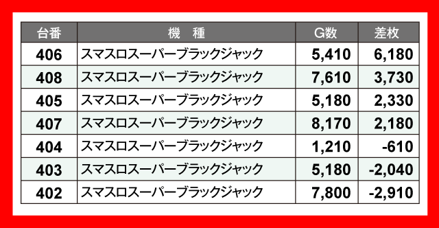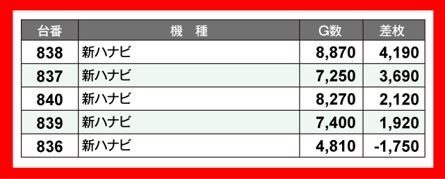 ※差枚数順に掲載しています。
