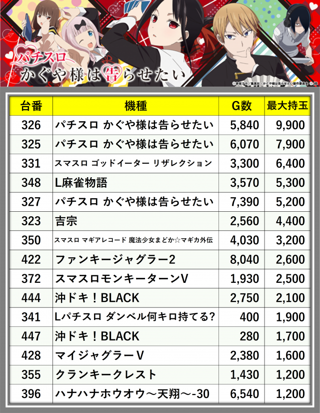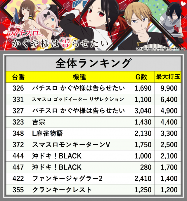 厳選された取材対象機種をはじめ、その他スロット全体から好記録が飛び出した!プレイヤーが楽しんだ1日を下記データにて振り返ってみて欲しい。