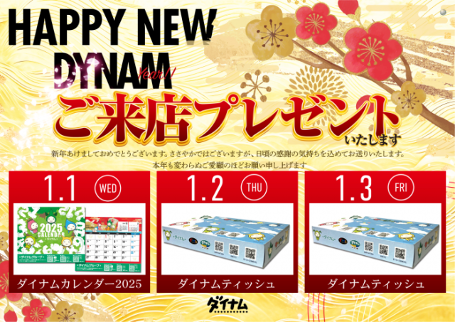 1月1日(水)-3日(金) お客様プレゼント配布 9時開店