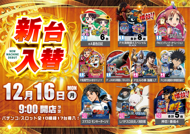 🌟明日新台入替!夏色日記/モンキーターン含む、全10機種🌟