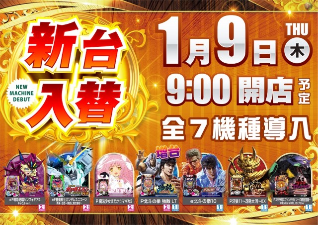 1月20日(月)新台入替 朝9時オープン!!