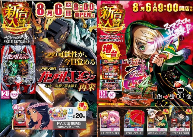 本日新台入替 Pガンダムユニコーン再来含む、全8機種導入!