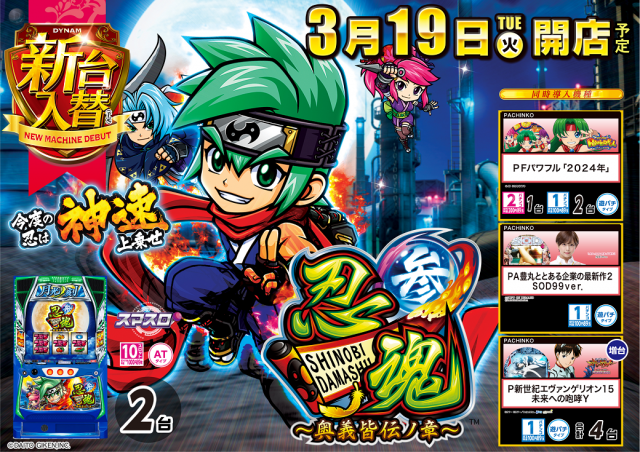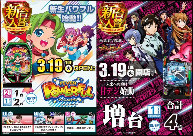 明日新台入替 PFパワフル/L忍魂含む、全4機種7台導入!