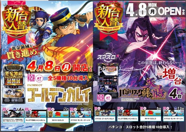 本日新台入替 ゴールデンカムイ含む、全5機種10台導入!