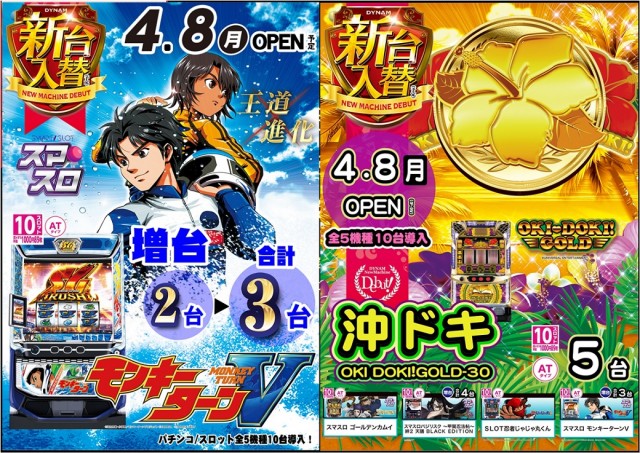本日新台入替 甘真・花の慶次3/押忍!番長ZERO増台!