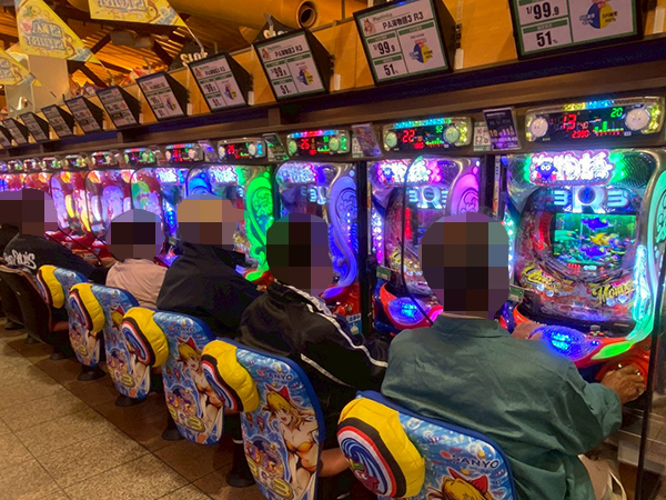 15時半ごろの100円/89玉パチンコを見てみると「PA海物語3R3」や「PA花の慶次 裂 99ver.」が大盛り上がり。魅力的なシーンをシマのあちこちで目にしている。