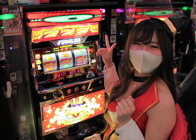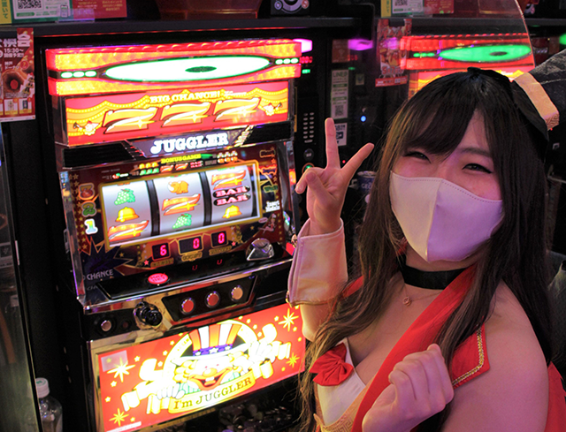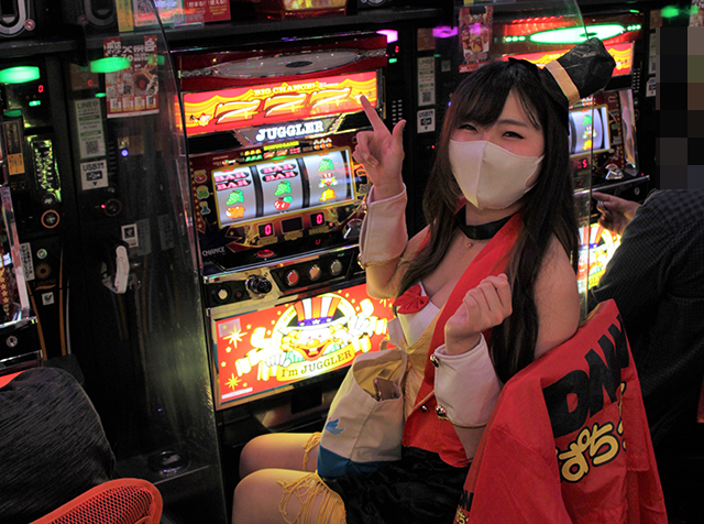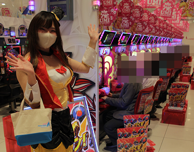 パチンコもパチスロもにぎわっている店内で、元気よく「コス×プレイ×レポート」をおこないたいと思います(@ ̄ω ̄@)