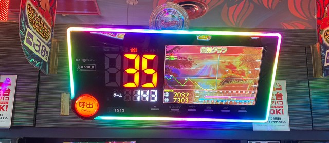 今回の20スロ354台のトータル差枚数は、前回取材と同じく3桁プラスの辛勝、白星を重ねることはできたものの、過去同店が成し遂げてきた華麗な軌跡を考えると物足りないというのが正直な所。一方、1,000overは前回より10台以上増大し全体の2割強となったのは喜ばしいポイントだった。