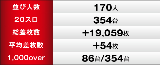 2023年5月にトータルプラス20連勝達成後も勢い衰えず好調が続く『エヌワンいわき店』。前回は+6.6万枚と素晴らしい結果を残した同店だが、今回も前回同等の盛り上がりを期待し、朝から170人のファンたちが集結。スペシャルサポーターのギブアップ大西も駆けつけ、店内の盛り上がりに注目が集まった。その結果は…+19,059枚のプラスの勝利!連勝記録をまたひとつ更新した。ここからは、20スロ全354台の出玉データとともに、当日の店内状況を紹介していこう!