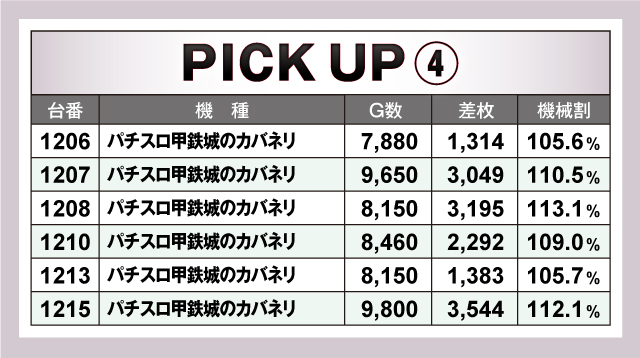 続いては、当日特に賑わっていた4機種をピックアップ。上でも取り上げた「パチスロ 革命機ヴァルヴレイヴ」「沖ドキ!GOLD-30」のほか、「スマスロ北斗の拳」「パチスロ甲鉄城のカバネリ」から+3,000枚クラスの好記録が続出! 楽しめる環境がしっかり整っていたことが窺えた!