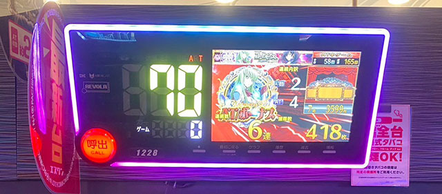 『パチスロ 革命機ヴァルヴレイヴ』からは大きな熱量が放たれ、同機種の高いポテンシャルを実感せずにはいられない。また店内最多設置台数を誇る『沖ドキ!GOLD-30』もコンスタントにハイビスカスが輝き、遊技するファンに至福の瞬間をもたらしていた。1530番台+4,425枚を筆頭に高い熱量で盛り上がり、これによって有意義な時間を過ごすファンが多かったことだろう。