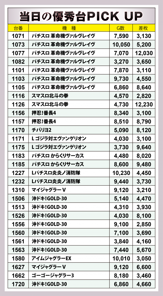 以下、当日の出玉データから優秀台の詳細に迫っていこう。