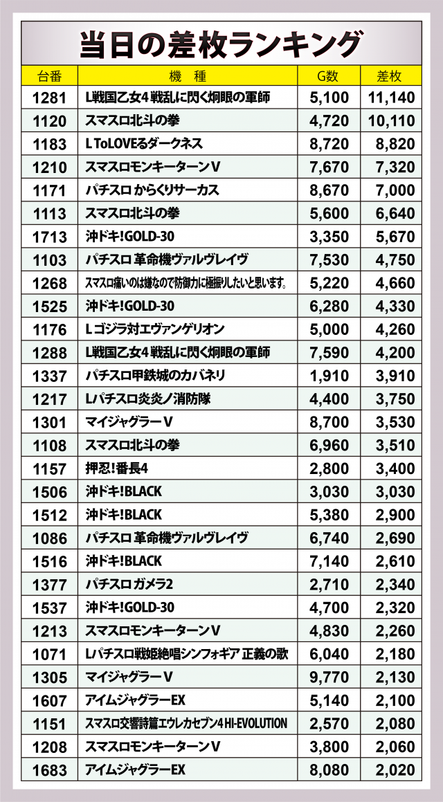 お次は突出した差枚数が続いた2機種をピックアップ。