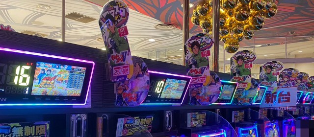 さらに続いたのが、『Lパチスロ炎炎ノ消防隊』の+8,200枚超、『L戦国乙女4 戦乱に閃く炯眼の軍師』が+7,900枚超、『L花の慶次~佐渡攻めの章〜』が+7,300枚弱、『押忍!番長4』が+7,100枚超、『パチスロ 革命機ヴァルヴレイヴ』が+7,100枚弱、『チバリヨ2』が+6,900枚超、『L聖闘士星矢 海皇覚醒 CUSTOM EDITION』が+5,300枚弱、といったところ。店内は随所に+5,000枚オーバーの台が満ち溢れていた。