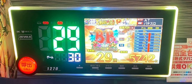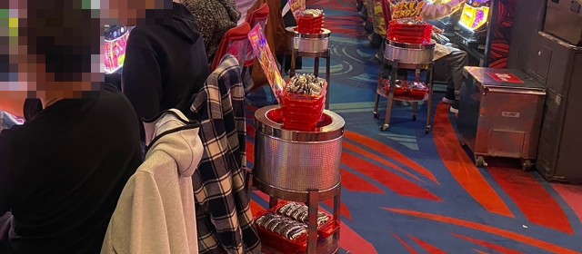 同店の当調査では万枚突破台が複数飛び出すことも多く、前回9日は4台と高水準。この日は日曜日とあって270人近いファンが開店を待ちわびていた。そして上で示した通り、またもやビッグヒットが続出したようだ。