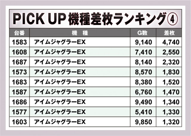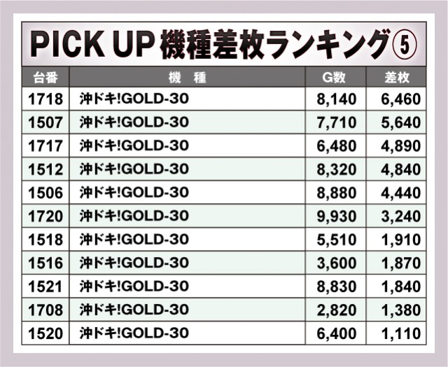 どの台がどれくらいの差枚数だったか確認しておこう。