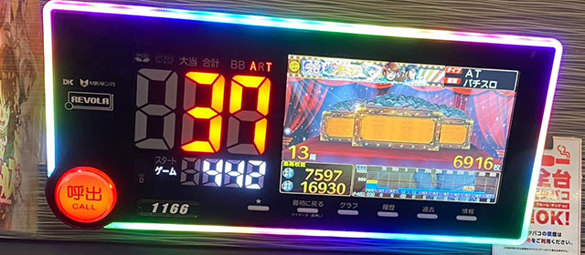 『パチスロ 革命機ヴァルヴレイヴ』『パチスロ からくりサーカス』『スマスロ ゴッドイーター リザレクション』『チバリヨ2』から合計6台の万枚OVERが発生し、店内の盛り上がりを大きく引き上げていた。『スマスロ モンスターハンターライズ』からも9,000枚OVERと大きな熱が絶えず、ファンは満足度の高い1日を過ごせたことだろう。5,000枚OVERが15台という点からも熱量が想像でき、同店が全力で迎えてくれたことが窺える。
