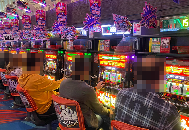 にぎやかな空間のなかで、プレイヤーたちは笑顔で多種多彩な機種で遊技を満喫していた。