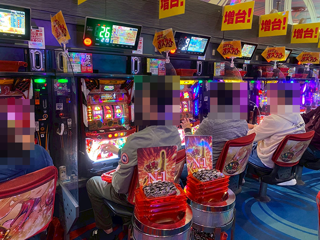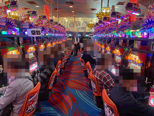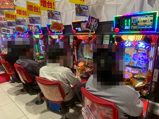 ホール全体をみていくと、さまざまな機種に笑顔で遊技をおこなっているプレイヤーの姿があった。