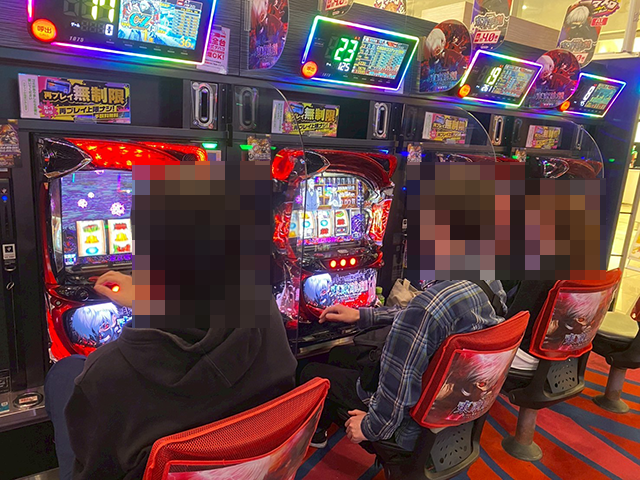 「L 東京喰種」や「スマスロ北斗の拳」などのスマスロも楽しまれており、明るい雰囲気に包まれていた。