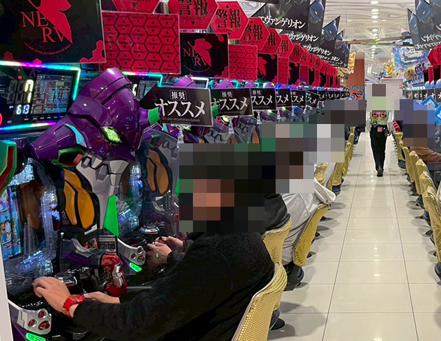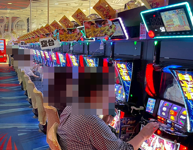 「スマスロ北斗の拳」や「スマスロ 新鬼武者3」などでも、プレイヤーはうれしそうに遊技中。