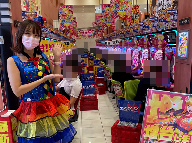 イキイキとした表情で遊技をおこなっているお客さまに混ざって、笑顔で進めていくいなちゃん♪