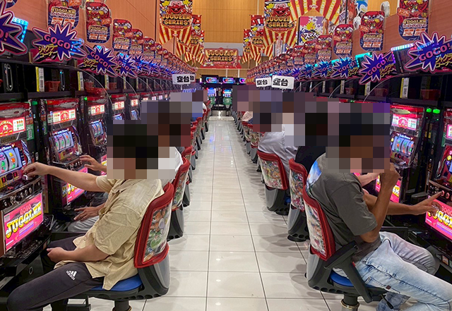 「アイムジャグラーEX」や「ゴーゴージャグラー3」に、にぎやかな光景が広がっていた。