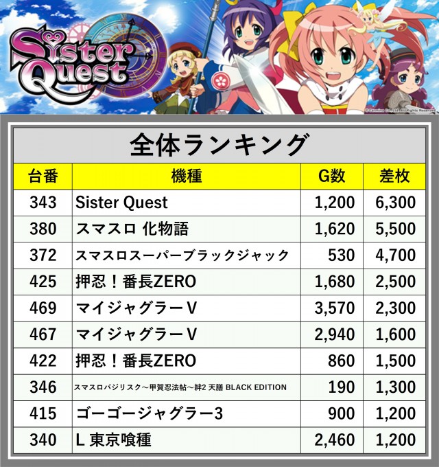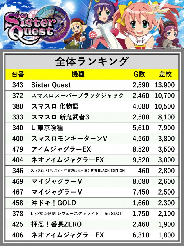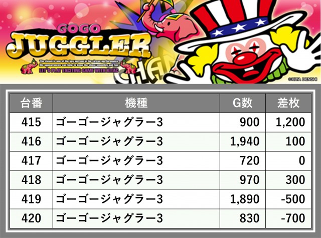 厳選された取材対象機種をはじめ、その他スロット全体から好記録が飛び出した!プレイヤーが楽しんだ1日を下記データにて振り返ってみて欲しい。