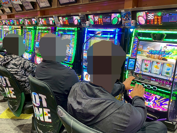 取材時は既に多くのプレイヤーが集結し、パチンコ・パチスロを問わずにぎやかな状況となっていた。