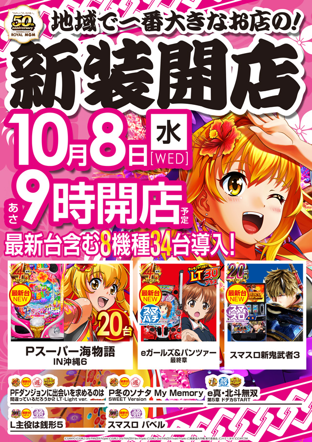 本日新装開店!! 最新台大量導入!新台遊ぶならMGMへ!