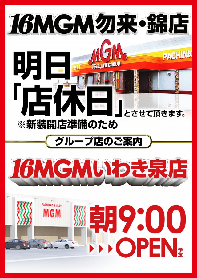 明日は店休日となります。ぜひ明日は旗艦店”いわき泉店”へ!!