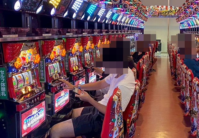 取材時の「マイジャグラーⅤ」は、あちこちに活躍をしている姿があった。
