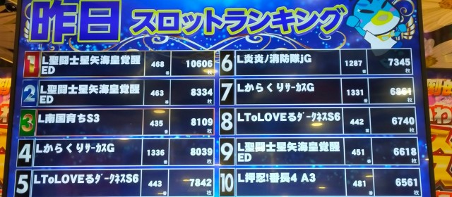 その他では『パチスロ 革命機ヴァルヴレイヴ』が+1万3千枚を突破、『沖ドキ!GOLD-30』では+1万枚超&+5千2百枚超&+3千9百枚が1台ずつ、『スマスロキングパルサー』では+9千5百枚弱、『スマスロバジリスク~甲賀忍法帖~絆2 天膳 BLACK EDITION』では+8千4百枚超&+7千1百枚超が1台ずつ、『スマスロ北斗の拳』では+7千3百枚超を筆頭に8台合合わせて+3万8千枚オーバーと、ここで挙げればキリがないほどのビッグヒットが連発した。