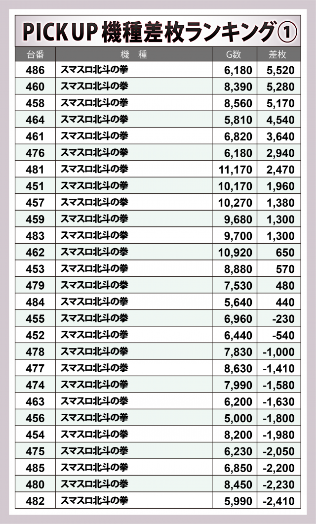 その他、『スマスロ北斗の拳』『沖ドキ!GOLD-30』ではプラス台の多さが光った。