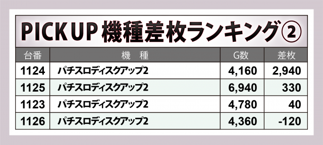 トップ30台はこれまでと比較しても好記録が続出し、数字こそ万枚超えを数えることはできなかったがほぼ同等の台が複数生じており、同店の好況が保たれていることが実証された。