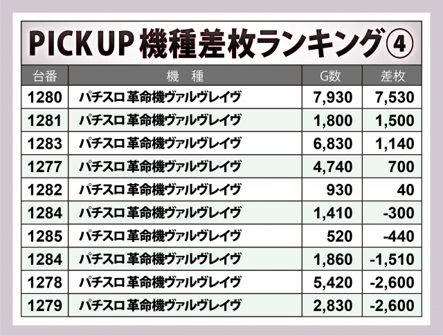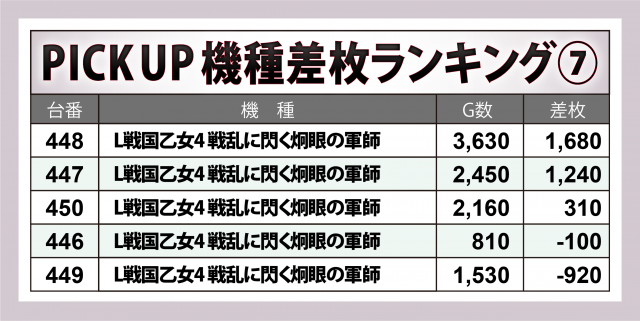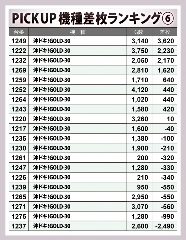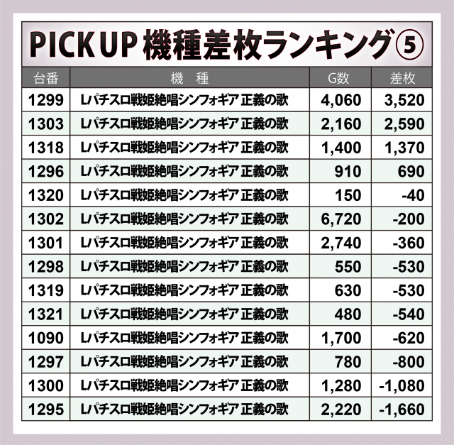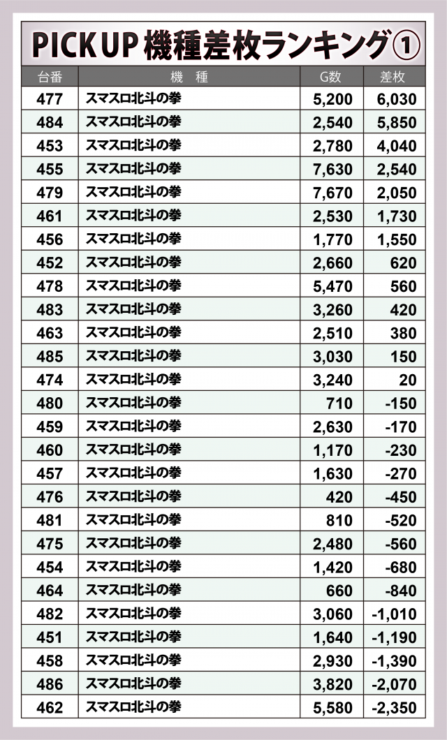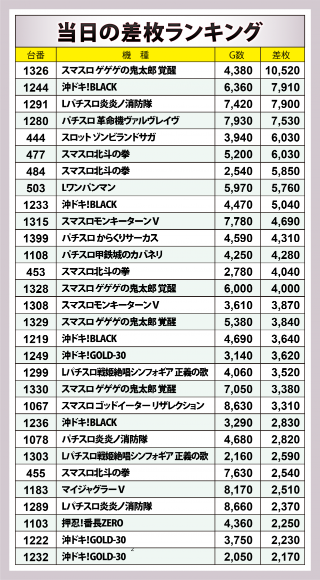 ※差枚数順に掲載しています。