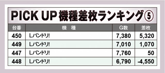 『チバリヨ2』から万枚OVERが生まれた事実から窺えるように、優秀機種からは大きな熱気が放たれていた。『スマスロモンキーターンV』『スマスロ北斗の拳』もまとまった出玉を確保する台が多く、ファンは恍惚の表情を浮かべていたに違いない。また新台『Lバンドリ!』もさっそく活躍しており、これら優秀機種たちが一丸となって当日の盛り上がりを作り上げていたと言える。