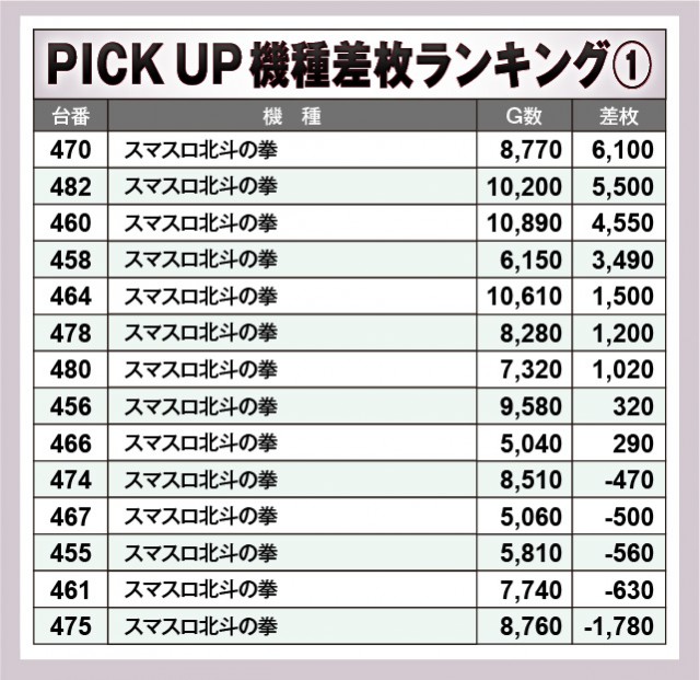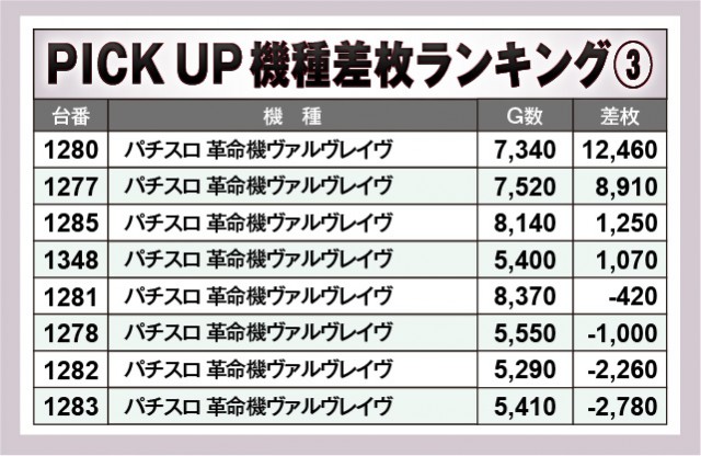 『スマスロ北斗の拳』『スマスロモンキーターンV』から万回転OVERを確認でき、さらに後者は万枚OVERも達成していることから、大きな活気と熱気を披露していた機種である。熱量に関しては『パチスロ 革命機ヴァルヴレイヴ』も負けてはおらず、今なお現役である所以を見せつけていた。また『マイジャグラーⅤ』も回転数と差枚数が比例するような結果となっており、レバーオンが楽しくなる状況だったと窺える。
