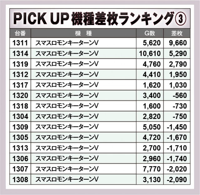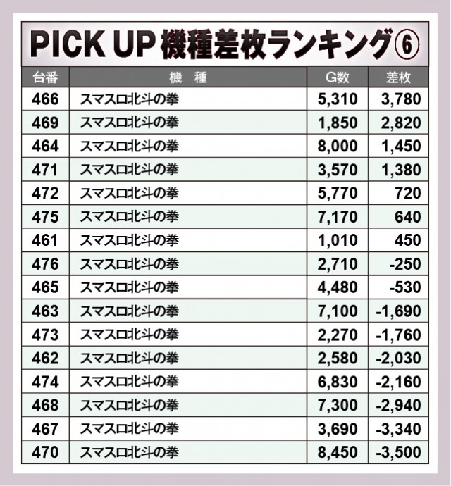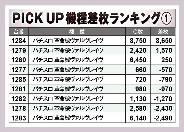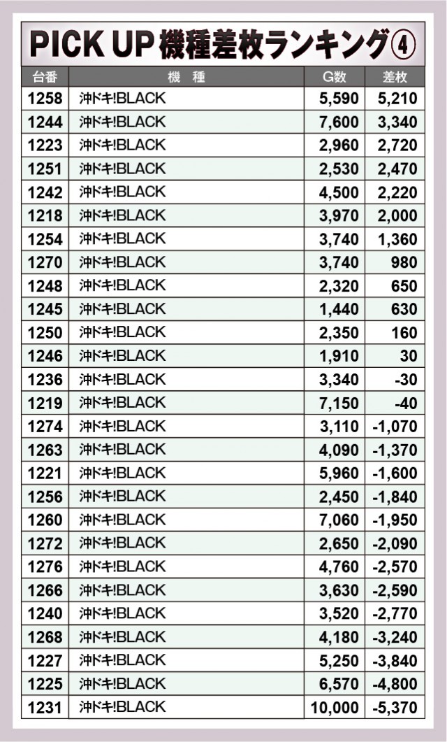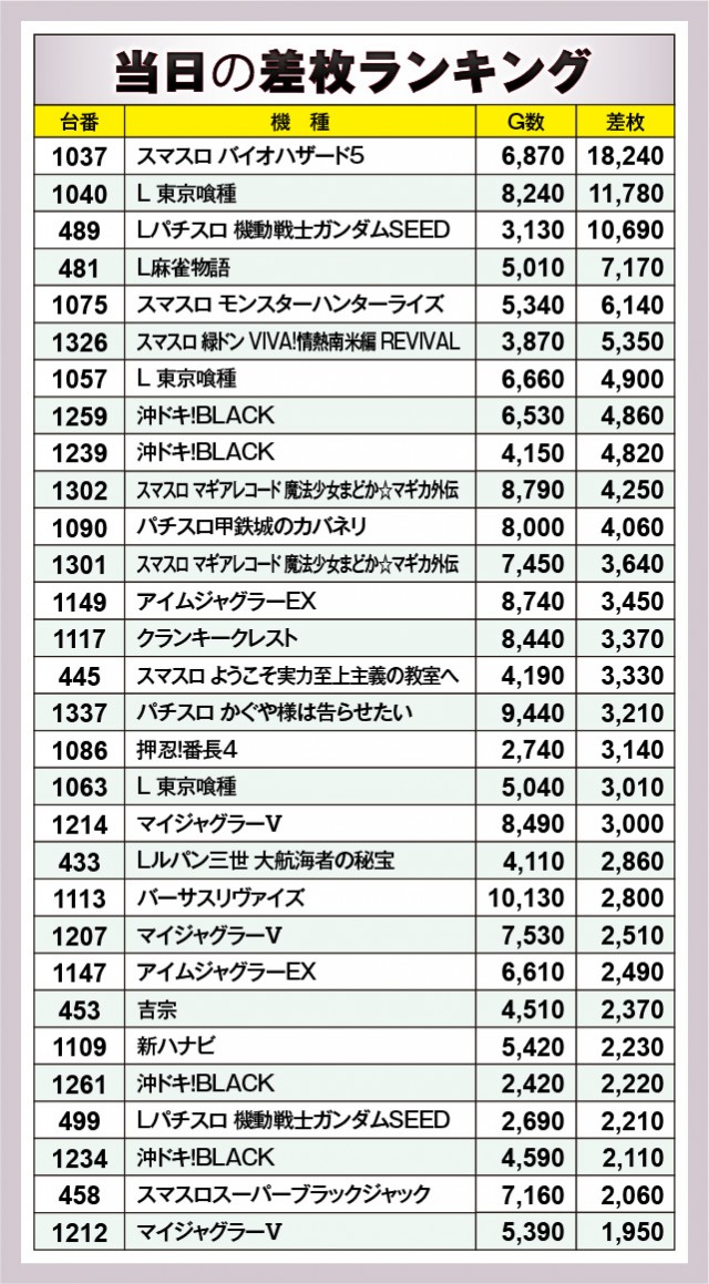 ※差枚数順に掲載しています。