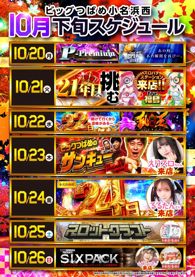 2025/09/30 09:00〜22:45 PR ![ビックつばめ小名浜西店 2025/9/30/(火)の来店イベントレポート「ぱちタウンコレクション」]()  9月30日、福島県いわき市にある「ビックつばめ小名浜西店」へと向かった。今回の取材は、「超RePlay取材」だ。AT機からボーナスタイプまで、幅広い機種が盛り上がりをみせた。