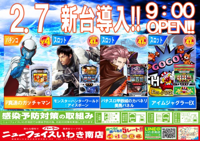 ニューフェイス南店、最新台導入済!朝9時オープン♪